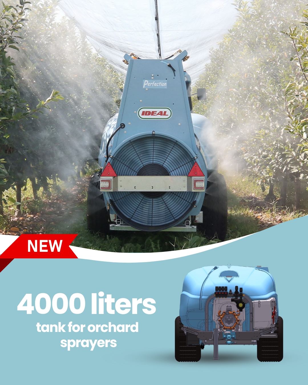🇮🇹 PERFECTION di IDEAL è un atomizzatore professionale progettato per offrire trattamenti ad altissima efficacia su frutteti con piante molto alte e a chioma fitta, o su più filari di vigneto a spalliera.