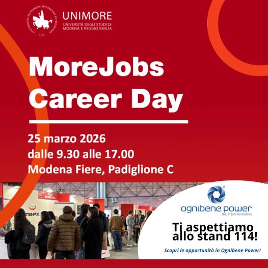 On Wednesday, March 25th, 2026, from 9:30 AM to 5:00 PM, Ognibene Power will be at MoreJobs Career Day 2026 at Modena Fiere, organized by the University of Modena and Reggio Emilia.
