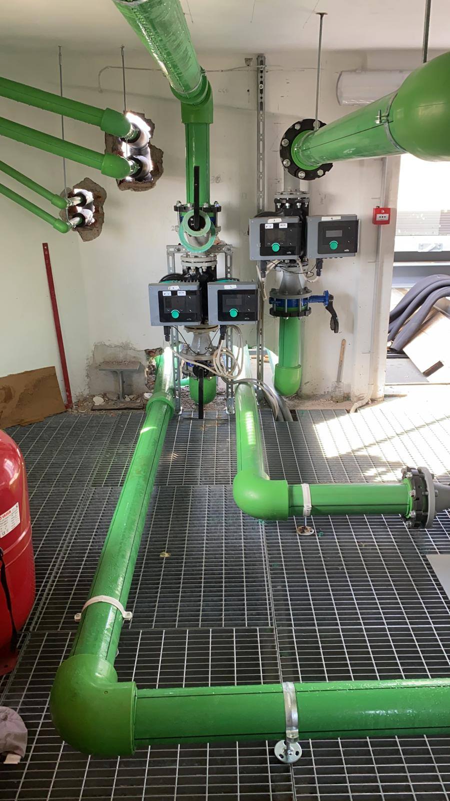 Impianto realizzato con le tubazioni #Alfaidro Faser, raccorderia in #PPR per saldatura di testa e di tasca con accoppiamento flangiato in #PPCV .