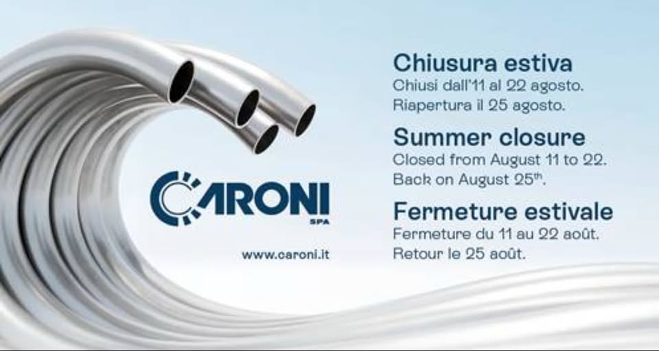 La nostra azienda chiude per la pausa estiva dal 11/08 al 22/08. Ci rivediamo a fine agosto.