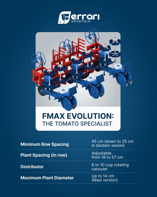 FMAX Evolution is designed to handle tomato seedlings with precision and speed, helping you keep control in the field when timing really matters.